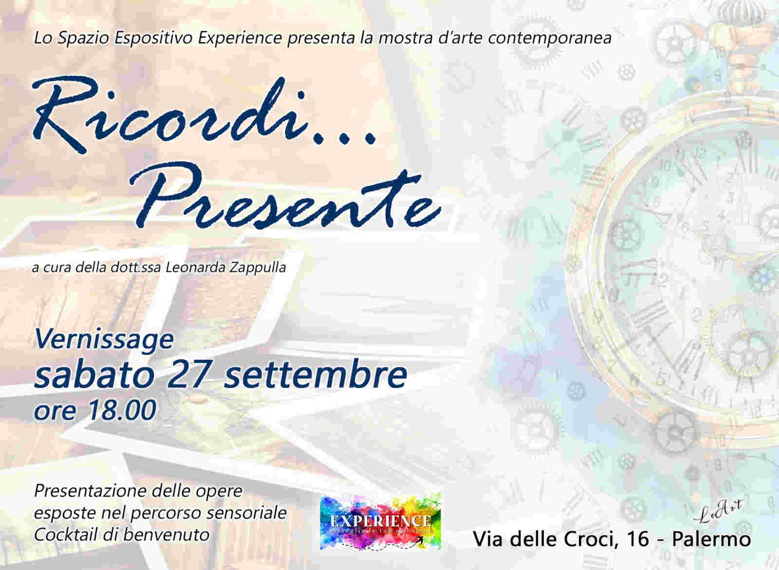 Francesco Pintaldi incontra per Sicilia Buona la Dott.ssa Leonarda Zappulla, responsabile dello Spazio Espositivo Experience e curatrice della mostra “Ricordi… Presente“, inaugurata a Palermo sabato 27 settembre.