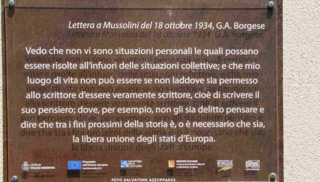 Camminando per le strade di Polizzi si possono leggere, su targhe affisse ai muri, riflessioni di Borgese ed estratti di sue opere.