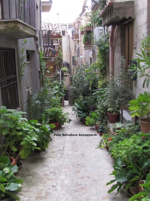 Di Geraci mi aveva colpito, già ad agosto, il rigoglioso arredo verde dei vicoli, che i (purtroppo) pochi residenti rimasti, mettono davanti alle loro case, quasi in competizione fra loro a chi mette le piante più belle. Ne ho avuto conferma quando ho mostrato ai compagni di cammino un angolo che ad agosto mi aveva colpito. Mauru, allora, mi ha detto che ce n’erano di più belli, e ci ha guidati fino a uno di questi per mostrarcelo. Era anche quello molto bello e ricco. Ed era davanti a casa sua.